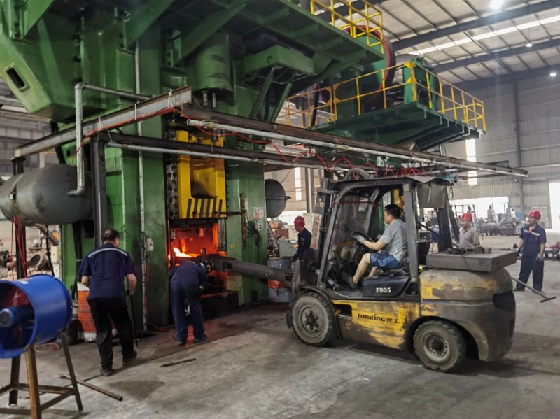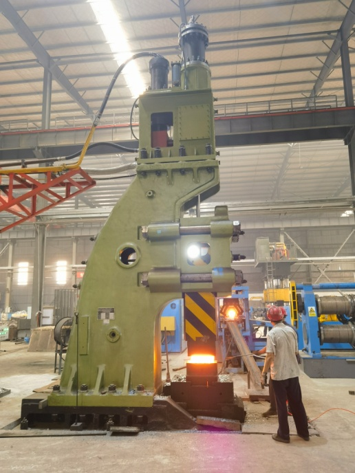 8月底,公司新建的8000吨锻造生产线正式投产。该生产线由两台双盘摩擦压力机(J53-8000B、J53-1600C)与2T全液压单臂式自由锻电液锤、全自动850辊锻机、操作机、以及1600KW-IGBT中频炉、闭式冷却塔、供配电系统等设施设备构成,总投资995.86万元。